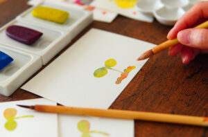 気軽に始めることができ、人にも喜ばれ、自分も楽しい絵てがみ教室は、長く続けることができる素敵な趣味です。墨で筆や竹のペンなどで輪郭を描き、日本の絵具で色を付け仕上げてゆく時間は、普段の喧騒からはなれ心をリフレッシュしてくれます。 はがきサイズなので気負うことなく楽しめ、自分でも気づかなかった自分らしさを発見できたりするのも皆さんが長く続けられている理由のひとつです